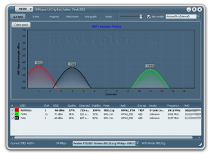 Сначала подключим адаптер, без антенны и посмотрим, что он нам покажет, и вообще будит ли работать? Как оказалось, alfa нашёл три точки. Будем ориентироваться на подключённую точку -66 dBm. На протяжении получаса сигнал почти не менялся, и это без какой ли бо антенны. См. фото 8 слева.