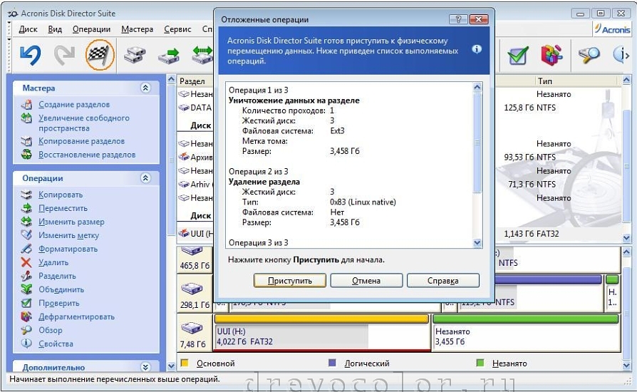 Кстати разделить USB-флешку можно в windowsе с помощью программы - Acronis Disk Director Suite. Скачать торрент файл. Открываем установленную программу Acronis Disk Director Suite и меняем размер раздела: Кликаем правой кнопкой по разделу нужной флешки, в выпавшей вкладке выбираем - изменить раздел. См. фото 4 справа. Потом двигаем бегунок справа на лево не доходя до серой области занятой Kali. Выбор размера места для сохранения изменений, остаётся за Вами. Жмём O.K., кликаем по флажку в шашечках, далее "Приступить". Перезагружаем windows и если вдруг флешка не обнаруживается, задаём ей букву: