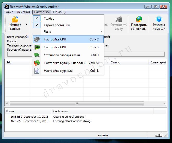 Заходим в "Настройки", проверяем "CPU" и "GPU", в "Установки словаря атаки" добавляем словари. См. фото 7 справа. Далее - "Импорт данных", "Импортировать файл TCPDUMP" - выбираем наш .cap файл и жмём "Запустить атаку". И если в словаре есть Ваш пароль, то программа Elcomsoft Wireless Security Auditor сообщит Вам об этом.